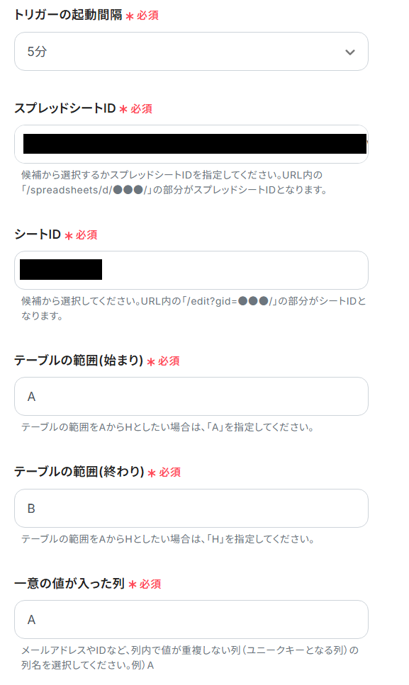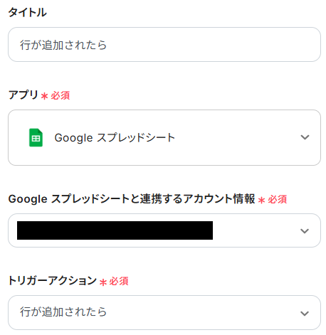 3.ここでは、トリガーとなるGoogle スプレッドシートの具体的な設定をしていきましょう。