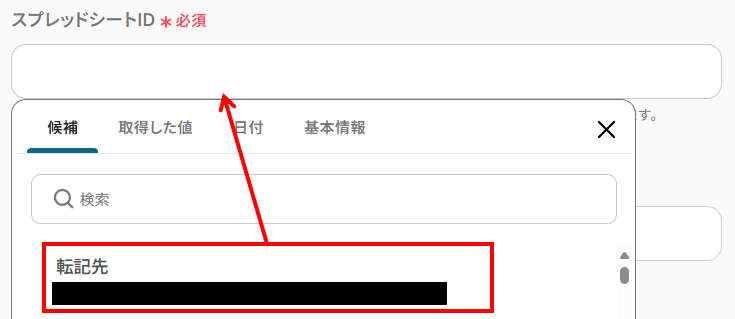 2.ここでは、転記先のGoogle スプレッドシートを具体的に設定します。