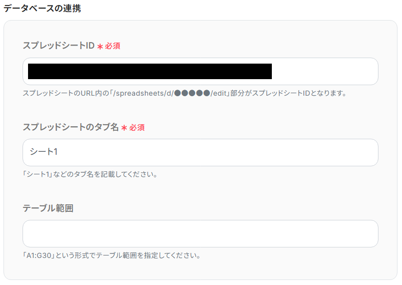 次にページを下に進み、「データベースの連携」欄を入力しましょう。