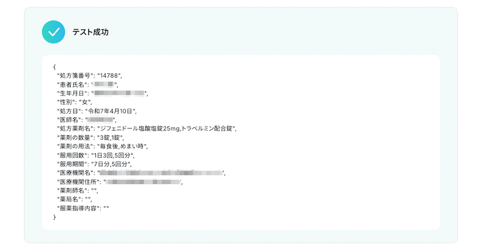 GoogleフォームやYoomの独自フォームなどで処方箋の画像ファイルを受け付けた場合に、送信されたファイルを自動でOCR処理し、抽出した情報をツールへ転記。オンラインでの処方箋受付からデータ入力までの流れをスムーズにし、受付業務の負担軽減とデータ化の迅速化に役立ちます!