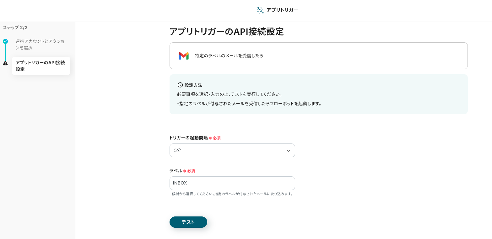 ステップ3:アプリトリガー「特定のラベルのメールを受信したら」