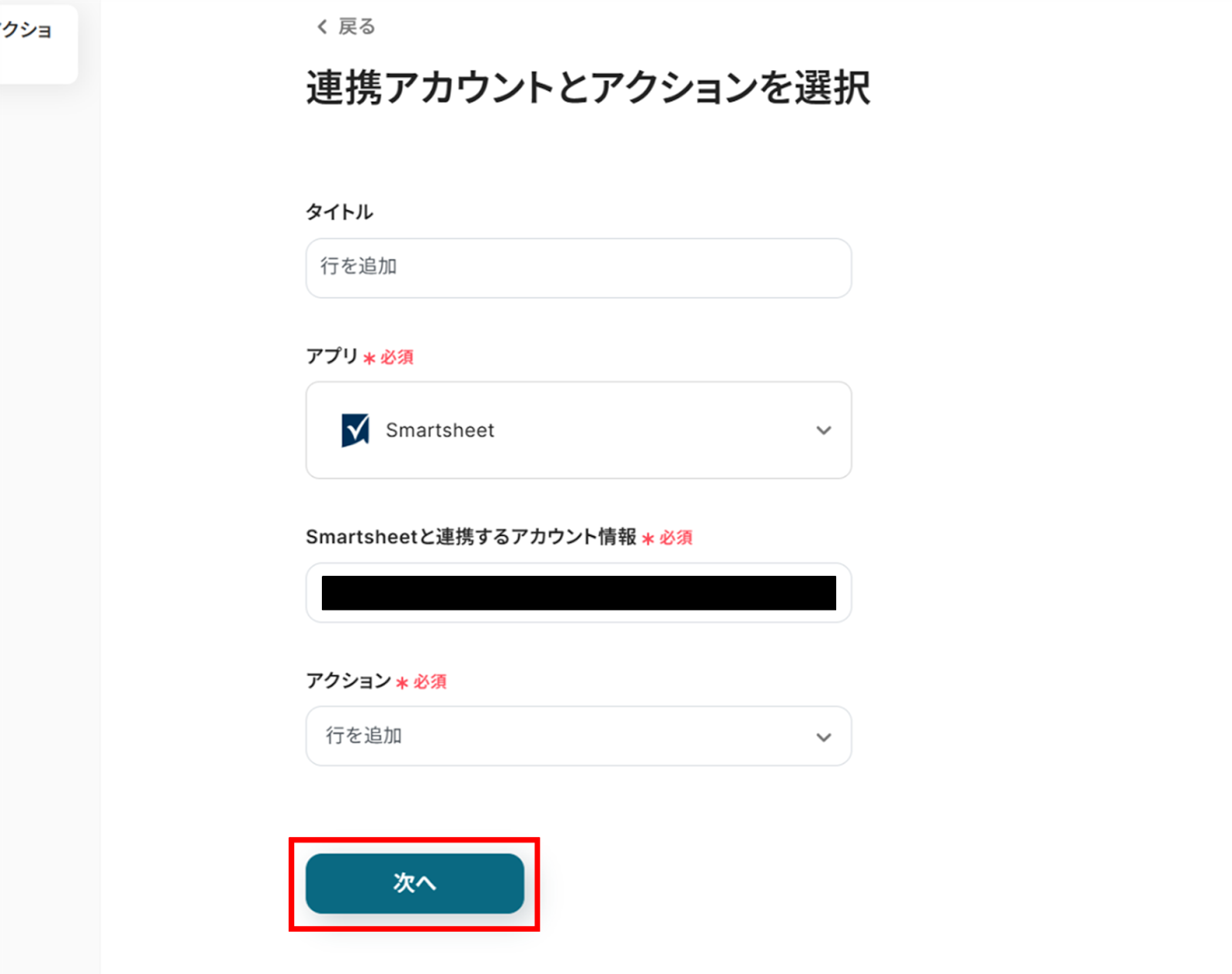 - アプリトリガー、Smartsheetと連携して行を追加する