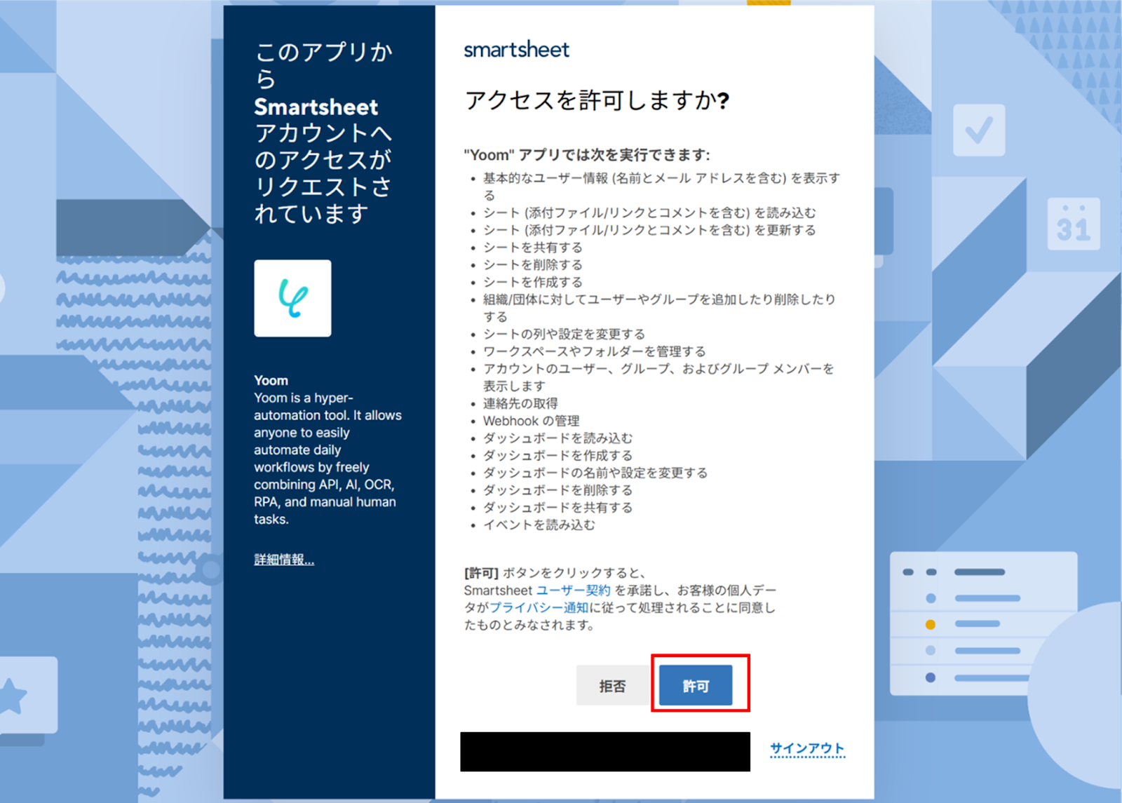 (6)アクセス許可の画面から、「許可」をクリックします。
