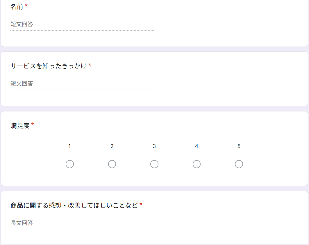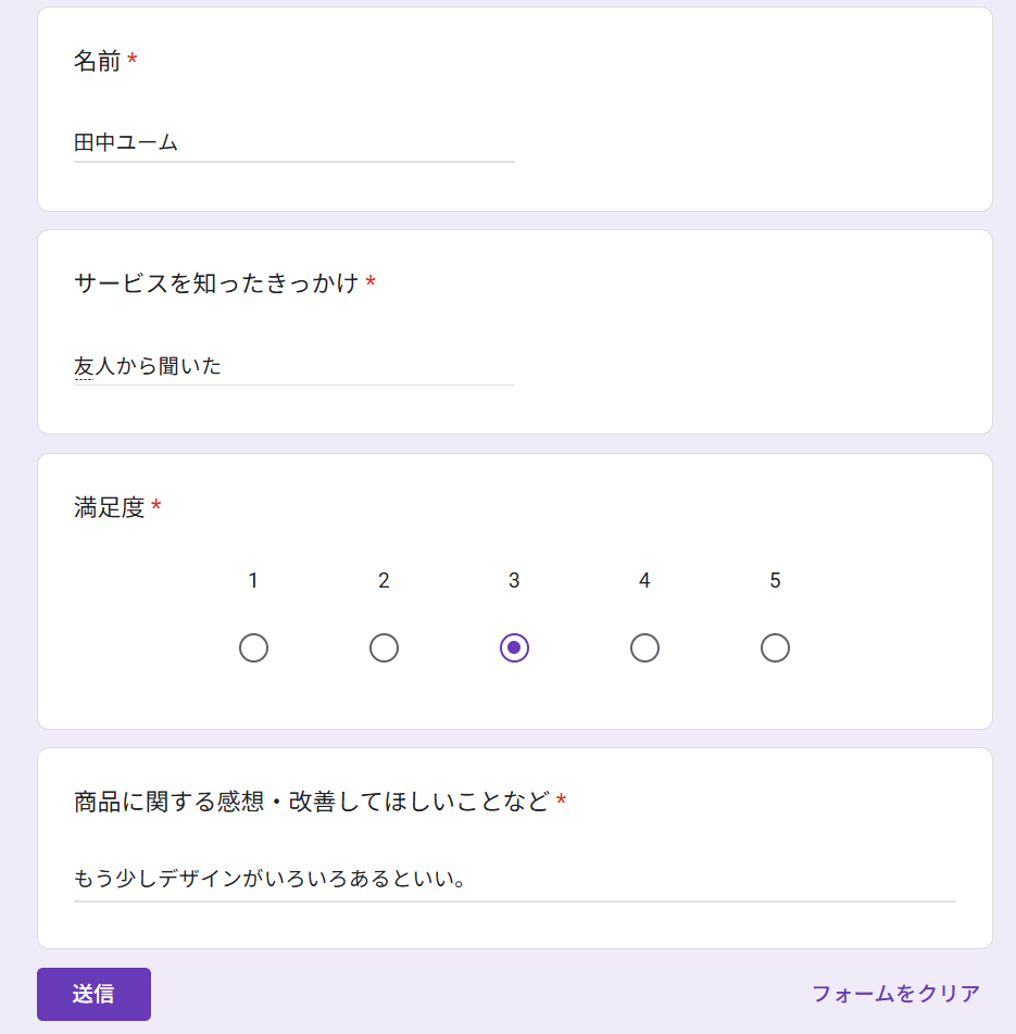 ここでGoogleフォームに、以下のようなテスト回答をします。