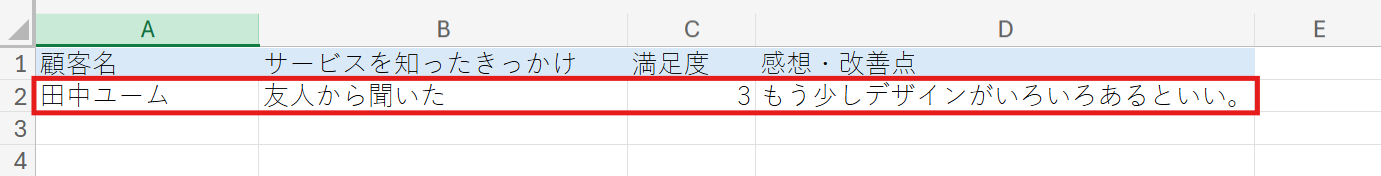 これですべての設定が完了したので、Googleフォームでアンケート結果を受け取ったら、Microsoft Excelの分析用のシートに追加されるかを確認してみましょう。