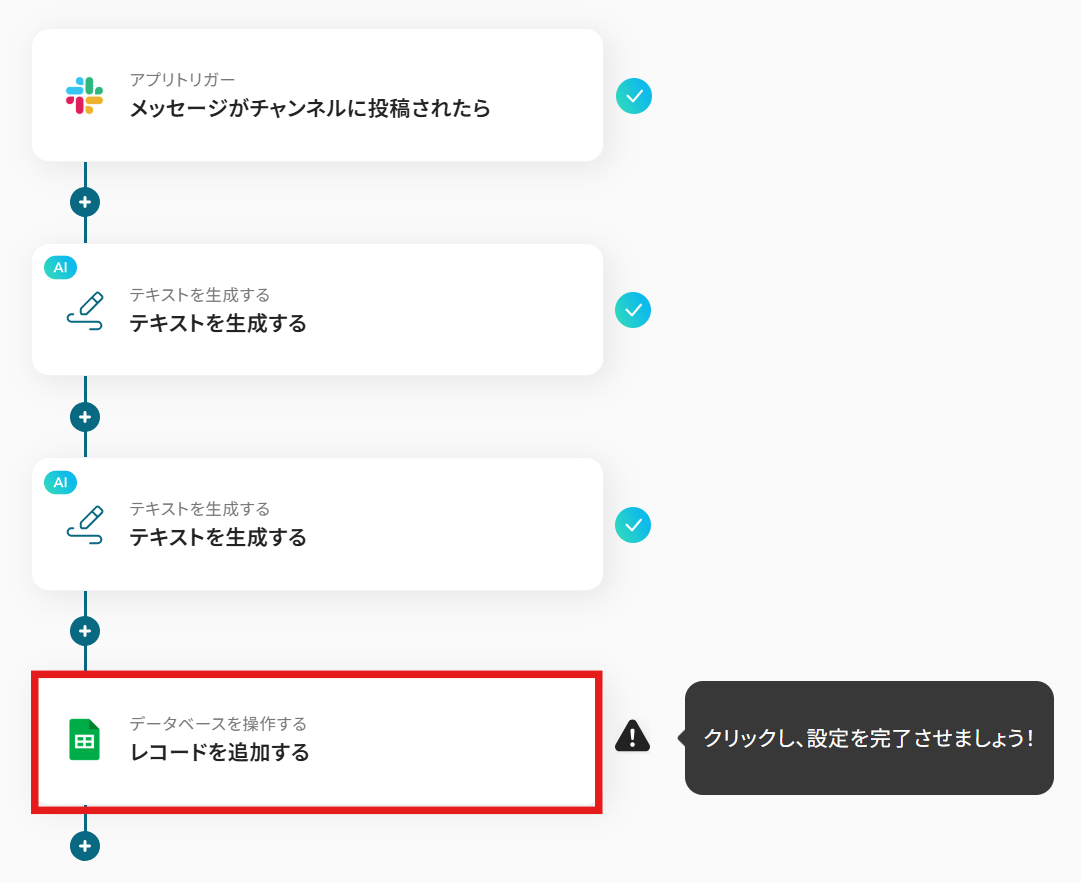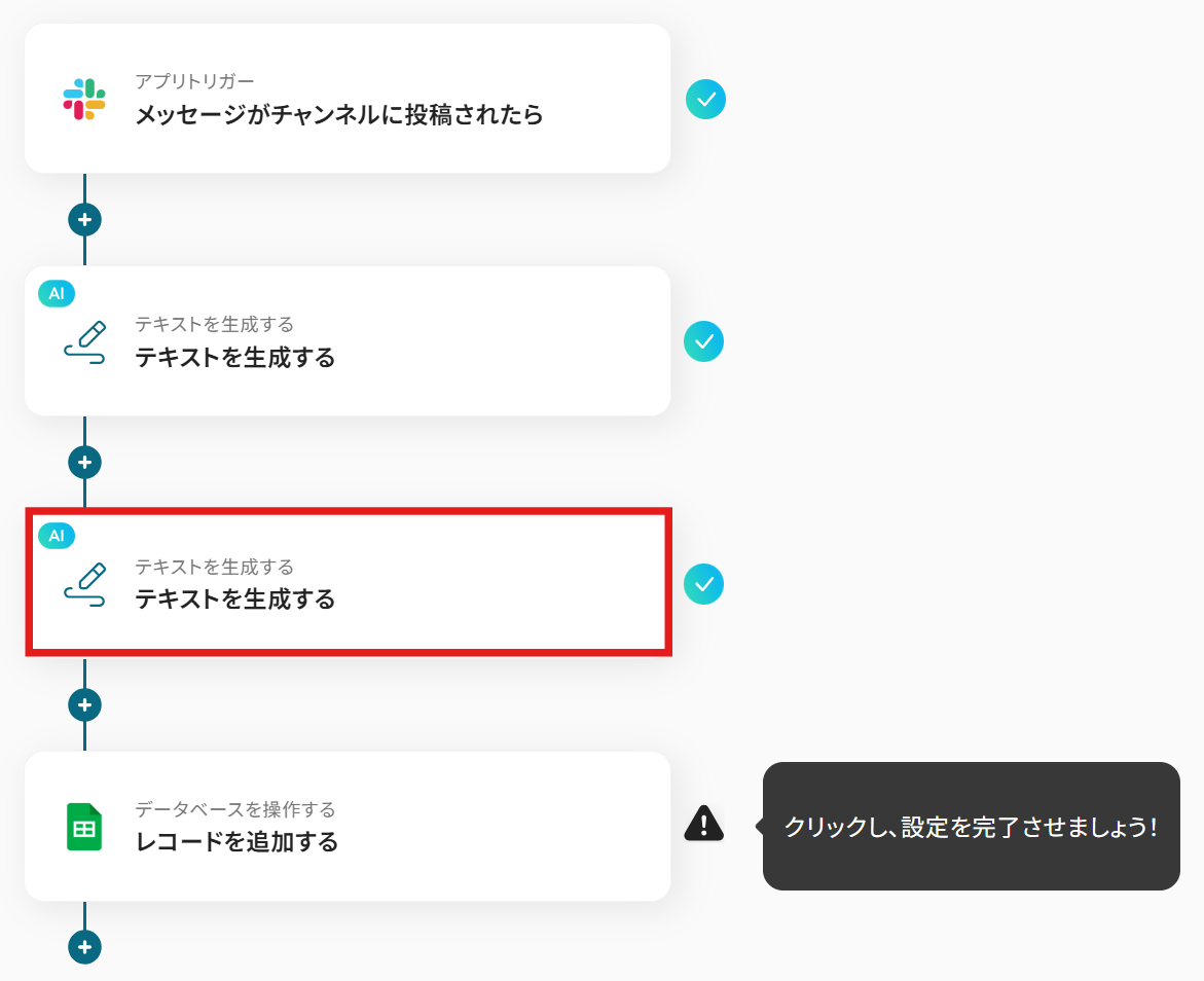 トリガー(Slack)とアクション(AI翻訳、Google スプレッドシート)の設定