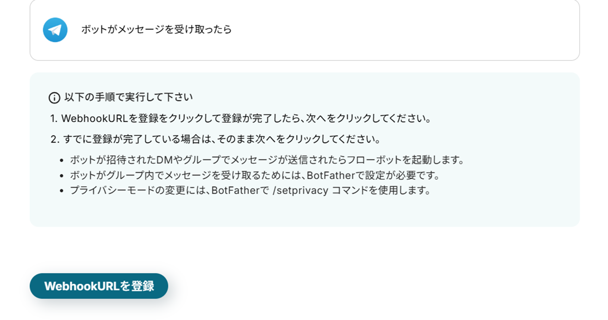 (3)「WebhookURLを登録」をクリックします。