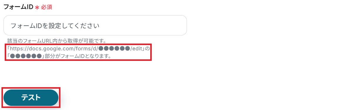 アプリトリガーのAPI接続設定という画面が表示されるので、トリガーの起動間隔とフォームIDを入力してテストしましょう。