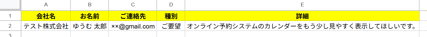 こちらも準備として、要望・問い合わせの管理に使うシートをご用意ください。