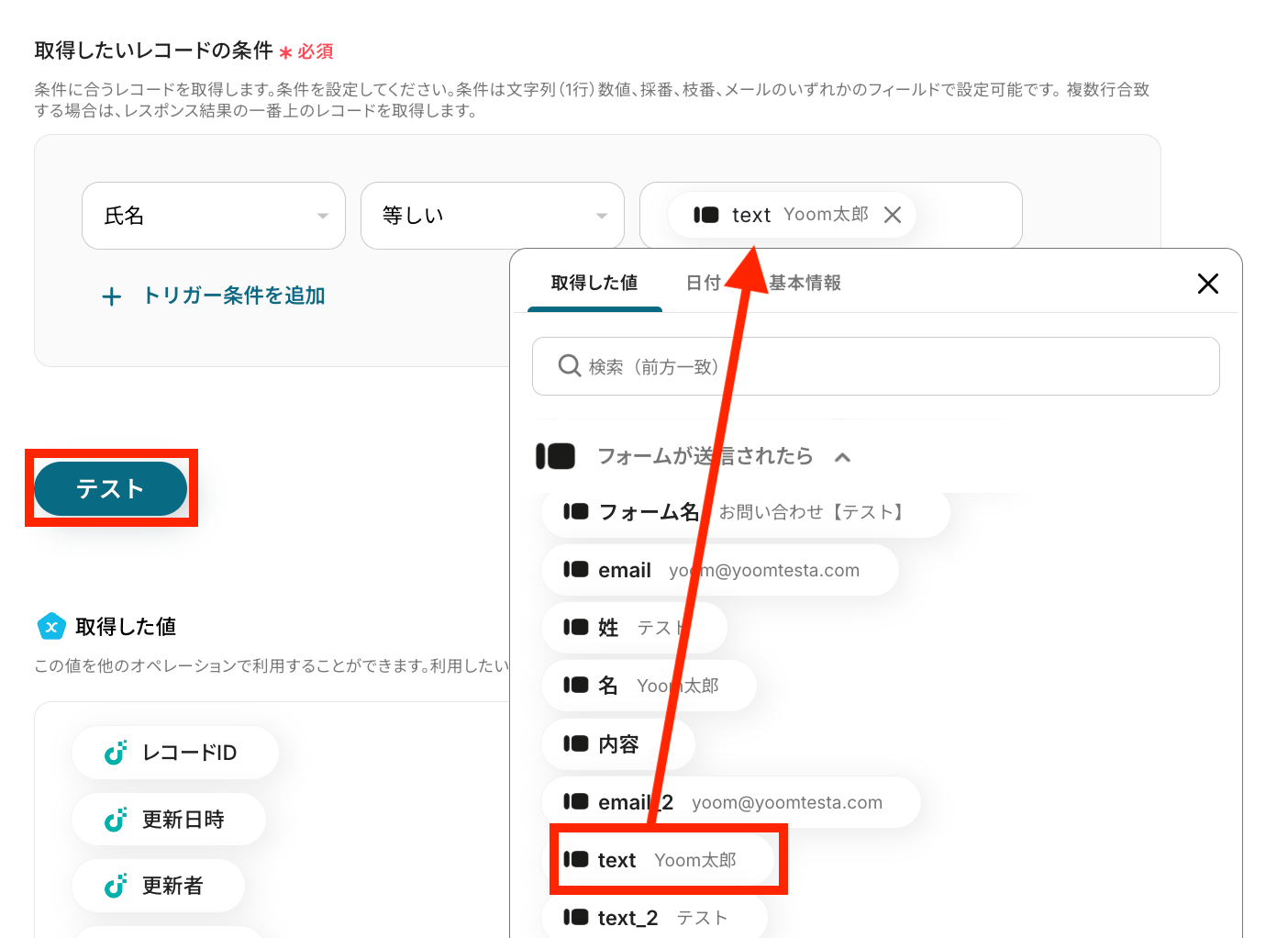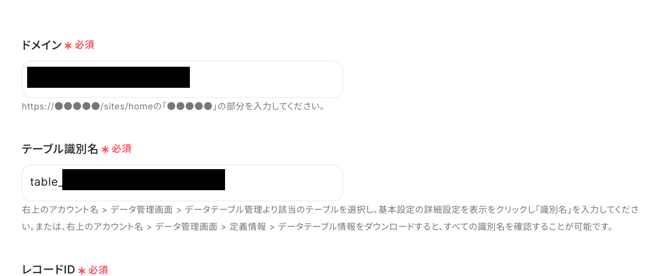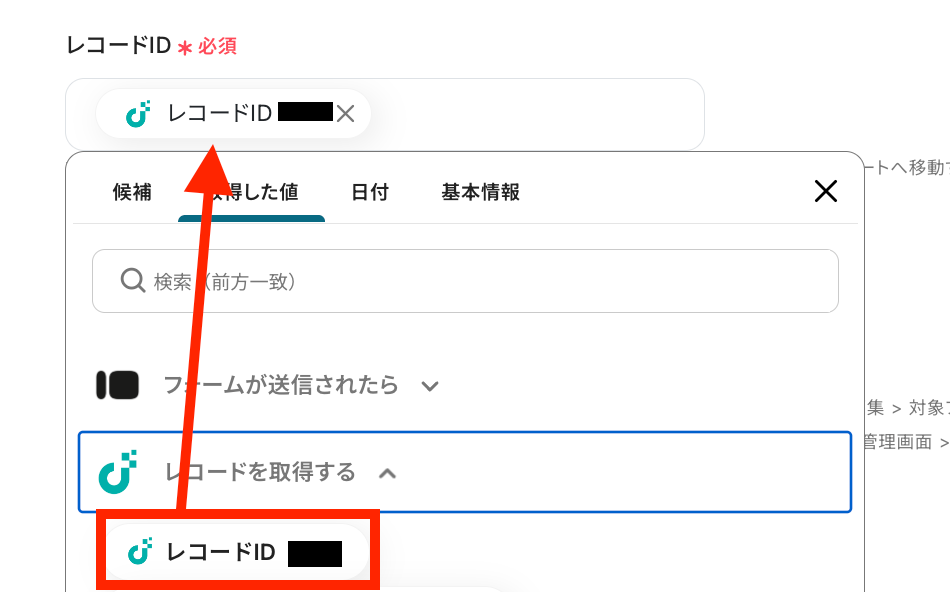 レコードIDは取得した値から選択して設定します。