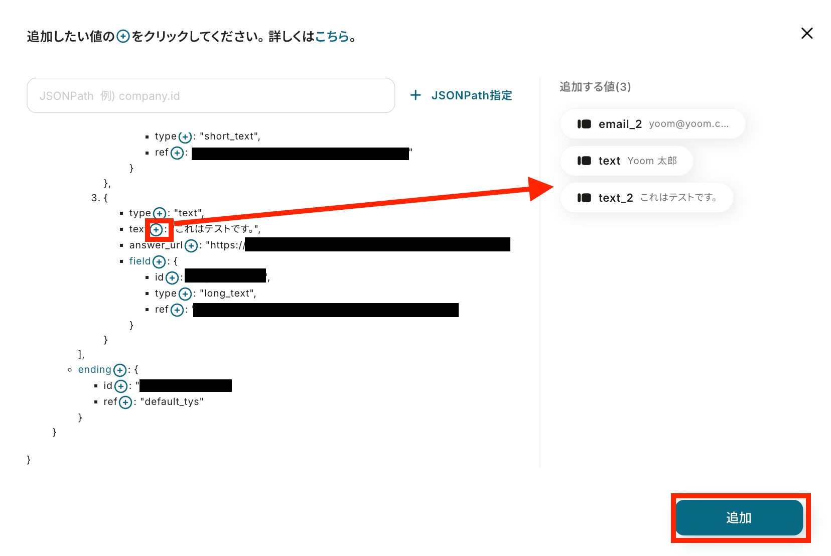 追加したい項目の右にあるプラスマークをクリックして追加する値を選択し、「追加」ボタンを押します。