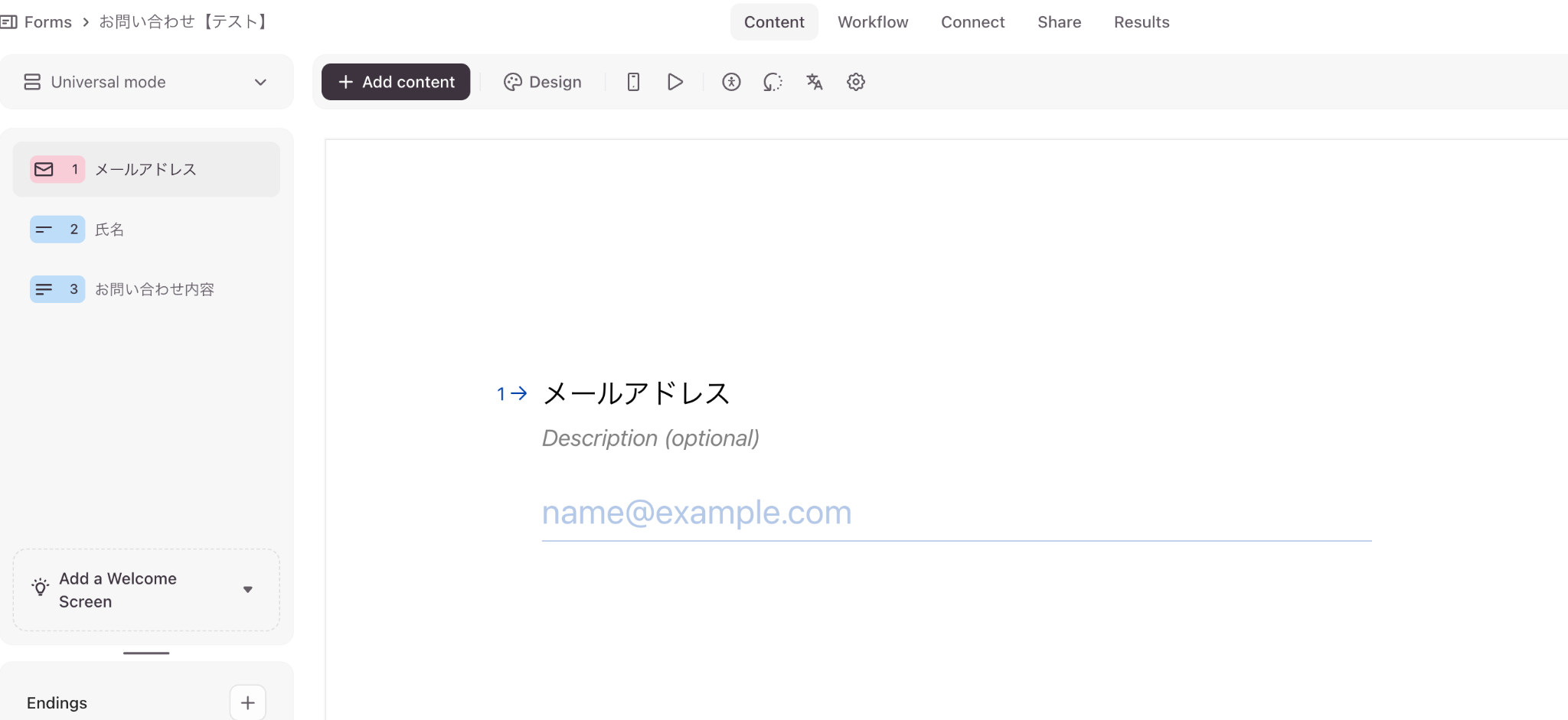 Typeformに登録のある方法でログインします。