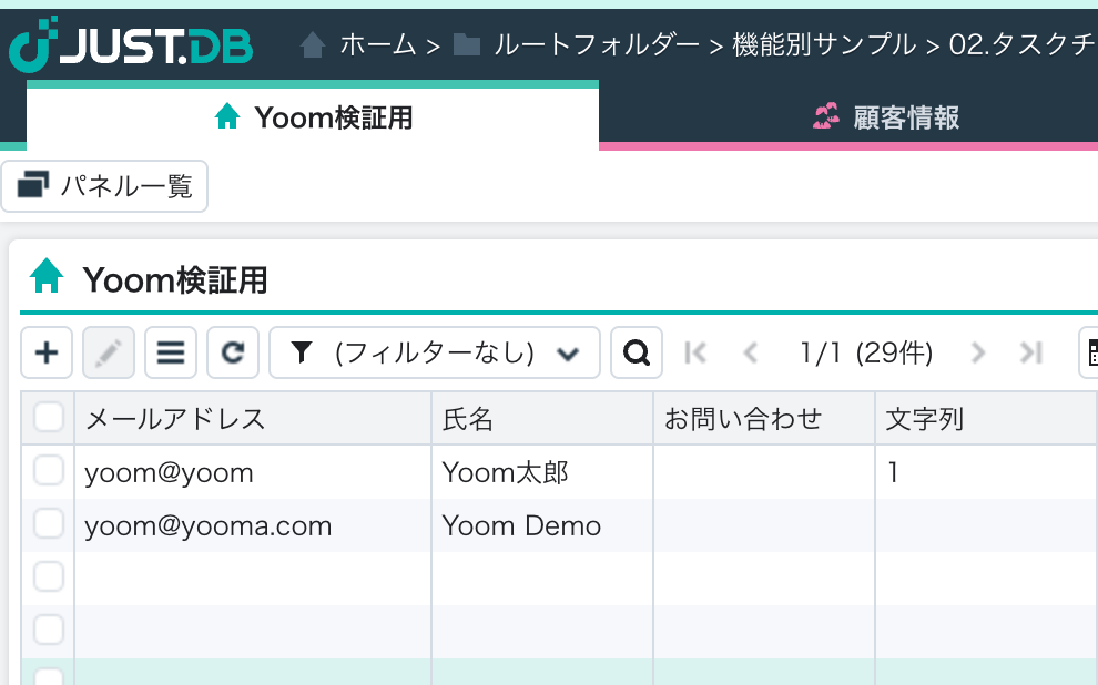 ・JUST.DB、kintoneのそれぞれとYoomを連携させてください。