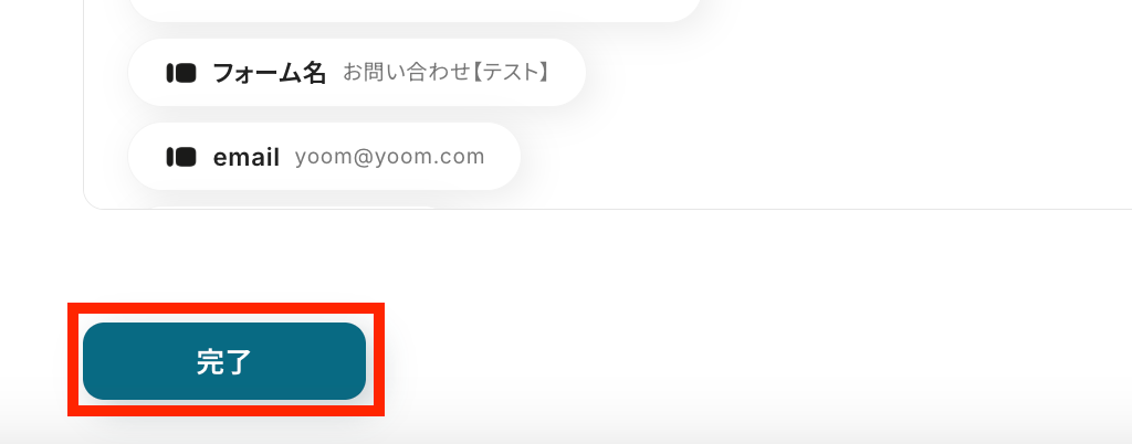 最後に、Yoomの設定画面で完了ボタンをクリックして設定を保存しましょう。