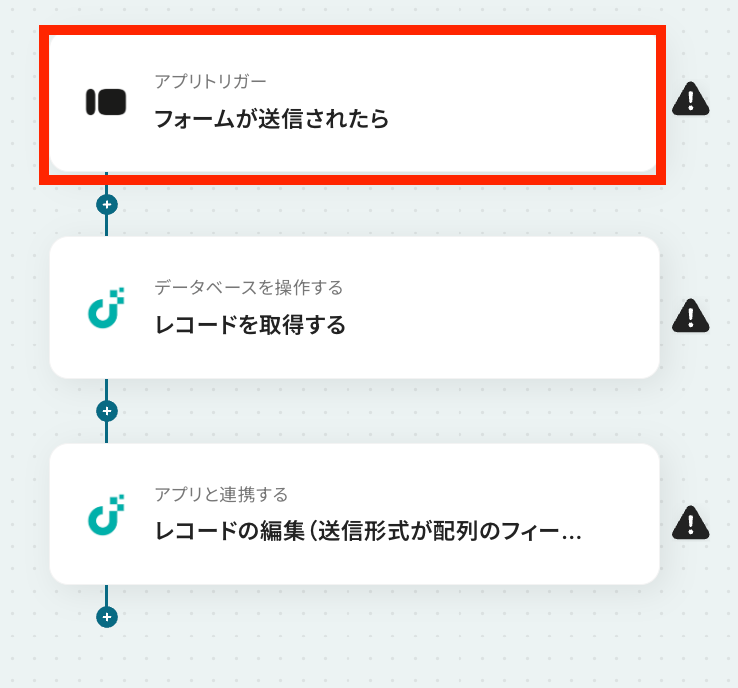 それではここから代表的な例として、Typeformからフォームが送信されたら、JUST.DBの配列フィールドのレコードを更新するフローを解説していきます!