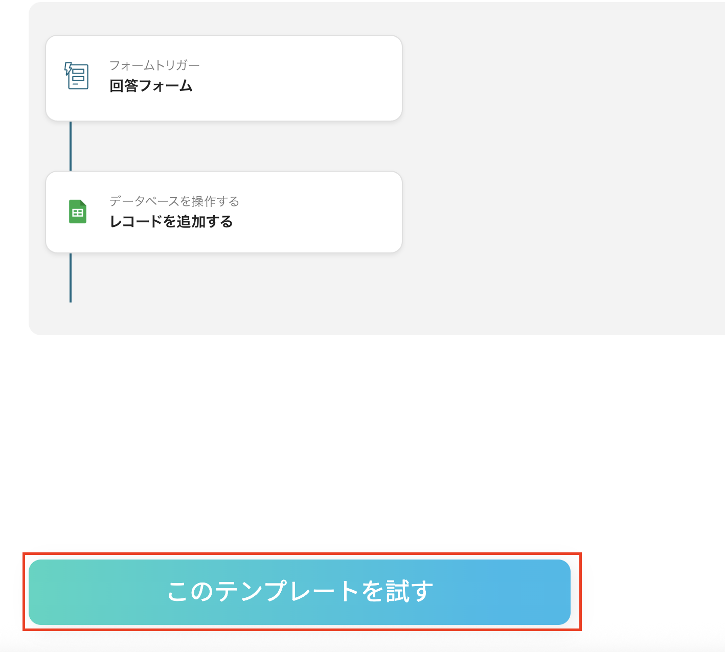 Notionの任意のデータベースに追加された情報を、Google スプレッドシートにも追加するフローです。