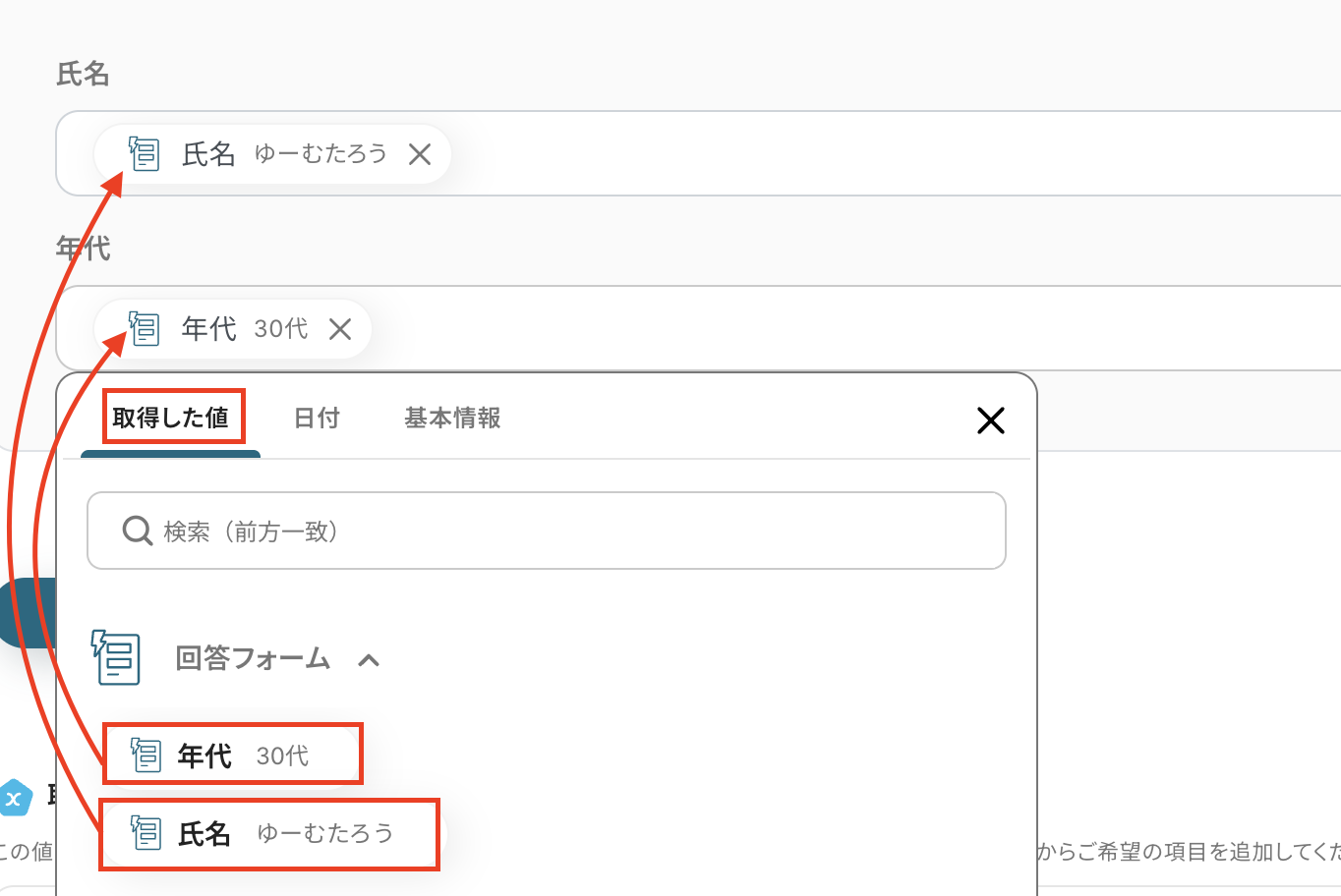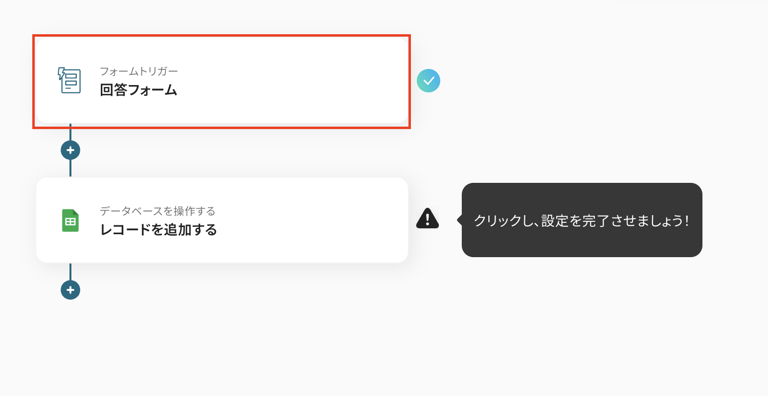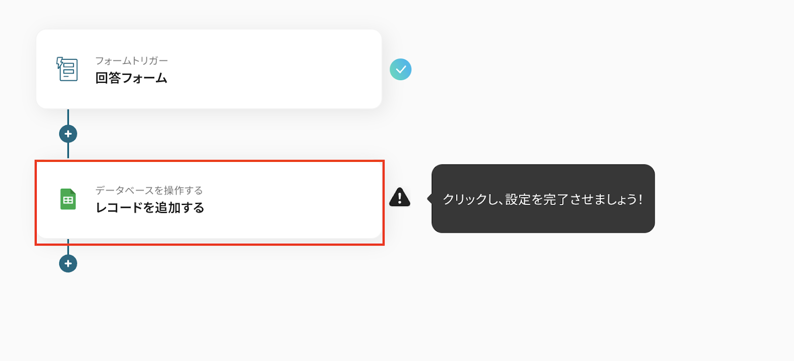 追加するレコードの値はGoogle スプレッドシートのトリガーの取得した値から選択しましょう。 取得した値を使用せずに入力した場合、同じ内容が繰り返しGoogle スプレッドシートに追加され続けることになりますので注意してください。 詳細はこちら を確認してください。