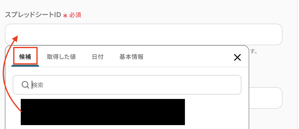 スプレッドシートIDは候補から選択しましょう。