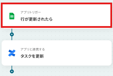 はじめに、ConfluenceとGoogle スプレッドシートをYoomと連携します 次に、トリガーでGoogle スプレッドシートを選択し、「行が更新されたら」というアクションを設定します 最後に、オペレーションでConfluenceを選択し、「タスクを更新」アクションを設定し、Google スプレッドシートの情報を紐付けます ※「トリガー」:フロー起動のきっかけとなるアクション、「オペレーション」:トリガー起動後、フロー内で処理を行うアクション■このワークフローのカスタムポイント