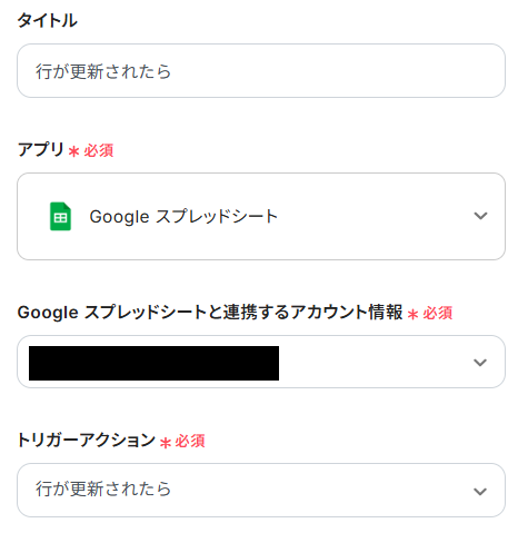 トリガーとなるGoogle スプレッドシートの設定と、アクションとなるGoogle スプレッドシートの設定