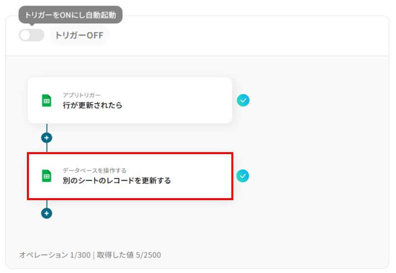 Google スプレッドシート自体や他のデータベースサービスの情報が更新された際に、指定したGoogle スプレッドシートの別シートへも自動的に内容を反映させられます。
