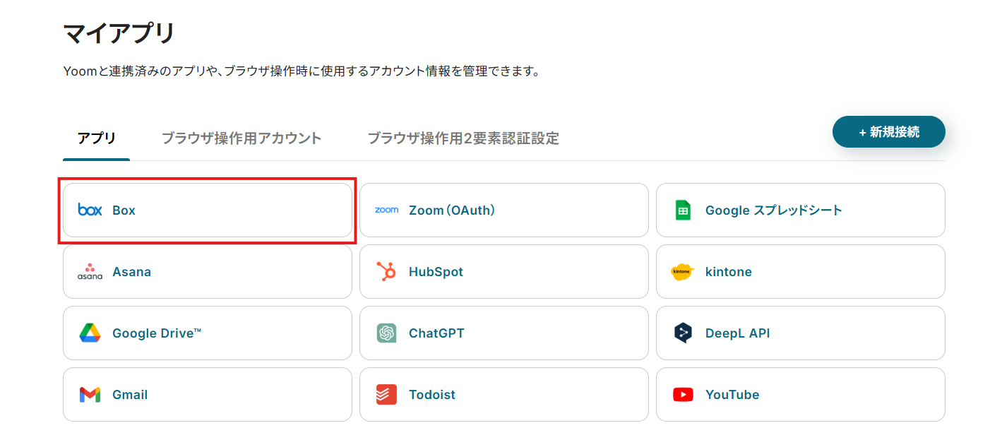 先ずはBoxをマイアプリに登録し、Yoomと連携させます。