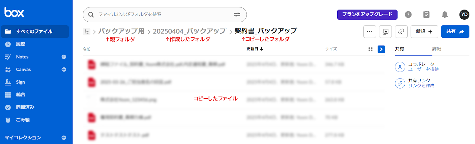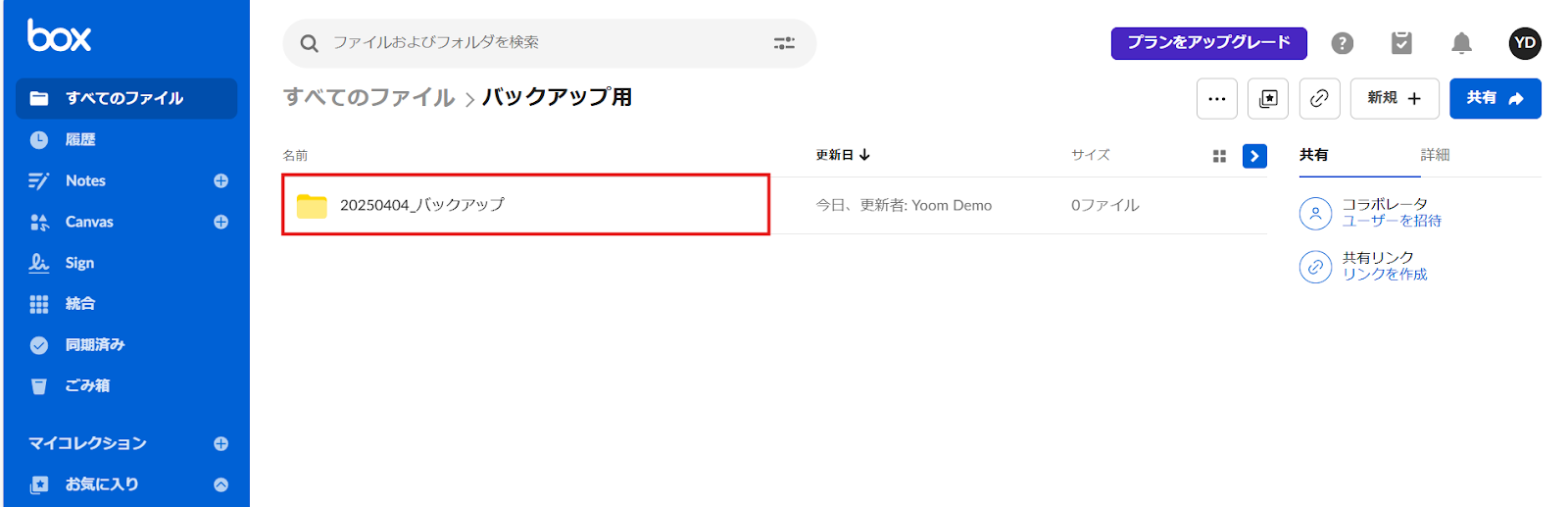 次に、Boxのバックアップ先となるフォルダを作成していきます。
