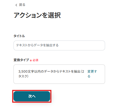 2.「対象のテキスト」は、入力欄をクリックして表示されるアウトプット(取得した値)から選択してください。