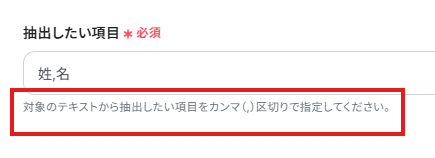 3.「抽出したい項目」は、テンプレートで抽出されるテキストから特に抽出したい項目を入力してください。
