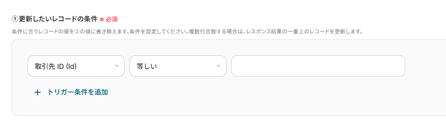「更新したいレコードの条件」は、プルダウンから選択してください。
