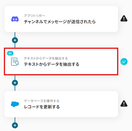 Discordのメッセージ内容を、Salesforceなどのデータベースアプリに書き込み・転記するフローです。使い慣れたデータベースアプリで、メッセージ内容からデータ管理が行えるので便利です。