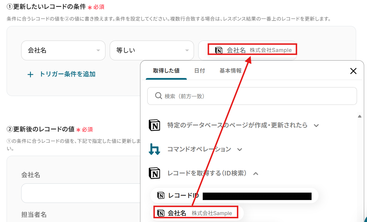 今回はNotionとGoogle スプレッドシートに登録されている会社名が一致する場合に、レコードを更新します。