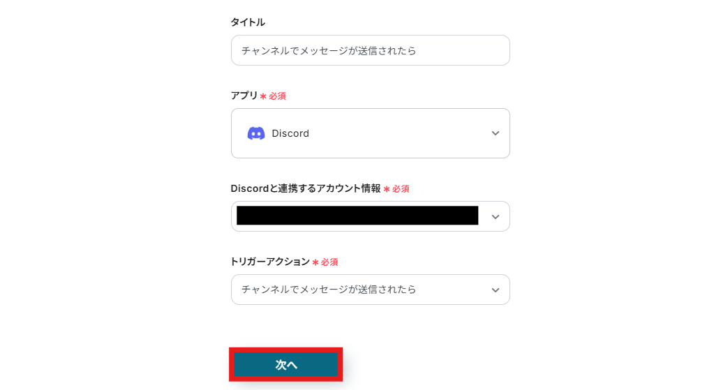 ステップ3:Discordのチャンネルでメッセージが送信されたら起動するトリガーの設定