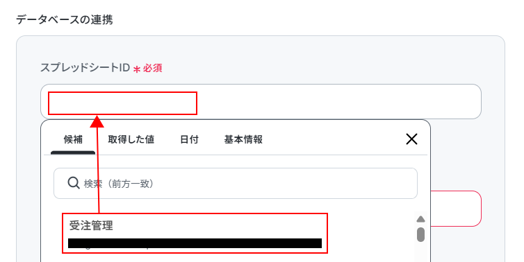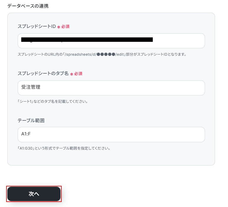 次に連携するGoogle スプレッドシートのスプレッドシートIDを設定します。