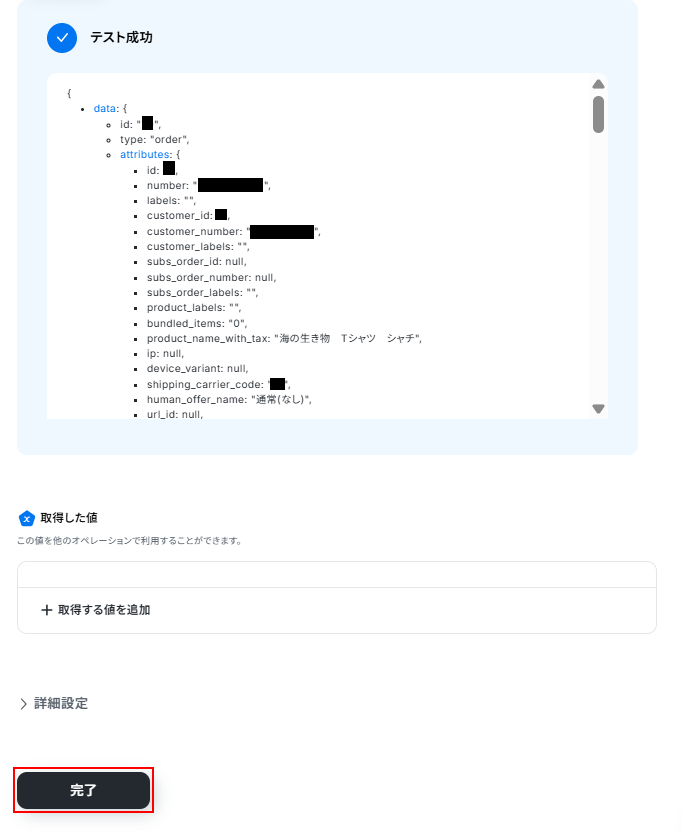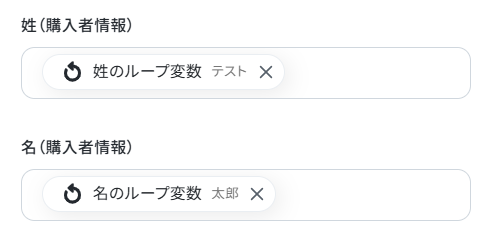 取得した値は実行した結果が設定される動的な値として利用できるため、このあとの設定でも使用します。
