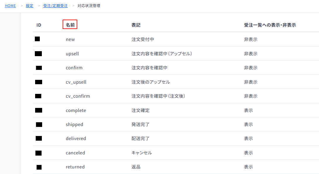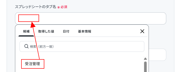 左端の項目にはGoogle スプレッドシートに設定している項目名が表示されます。