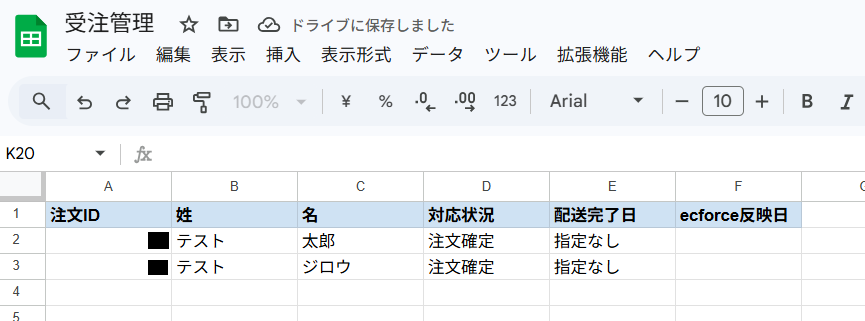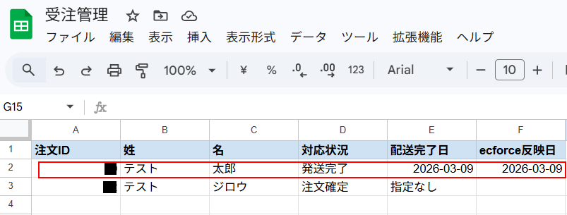 そのため、まずはGoogle スプレッドシートにecforceの受注情報を記載しておく必要があります。