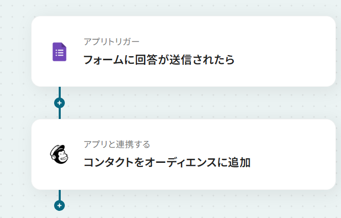 それではここから代表的な例として、Googleフォームで情報が送信された際に、その回答内容をMailchimpにコンタクトとして自動で追加するフローを解説していきます!