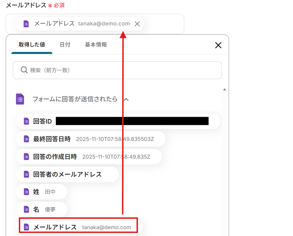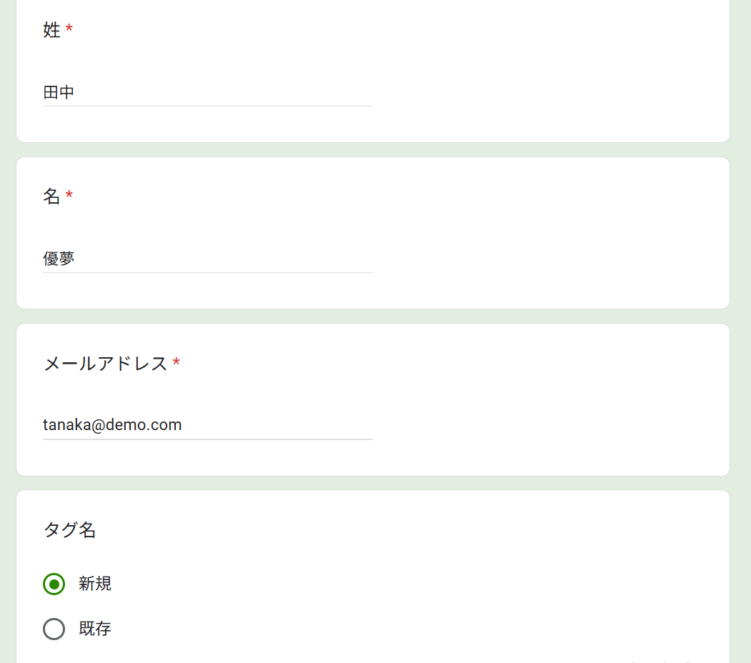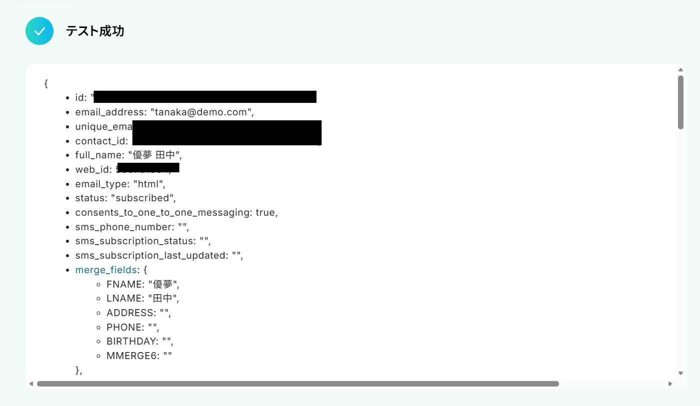 これにより、Googleフォームの回答ごとに変わる情報をMailchimpへ動的に反映できます。