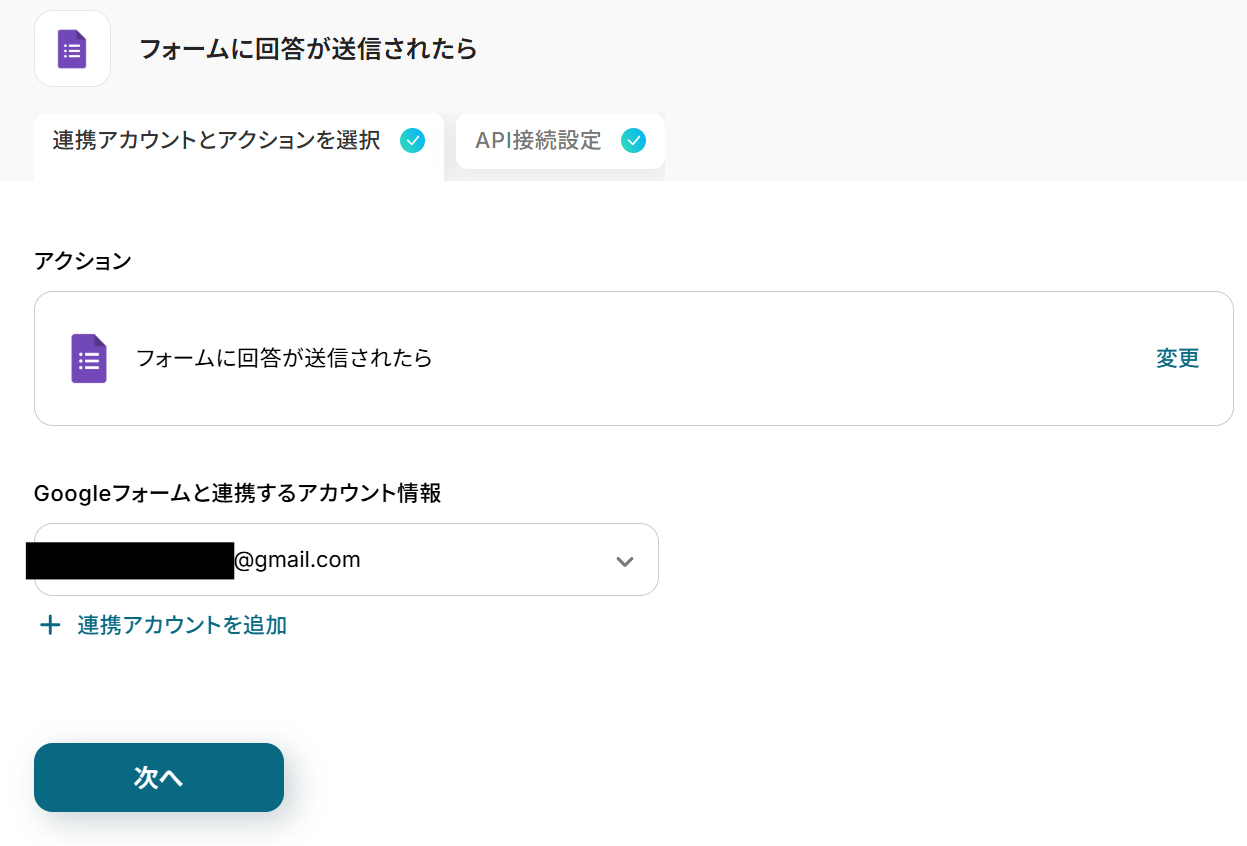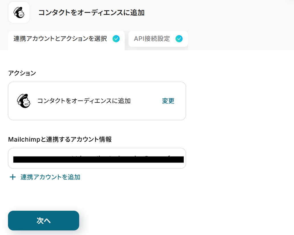 このステップでは、Googleフォームに送信されたコンタクト情報をMailchimpでオーディエンスに追加する設定を行います。