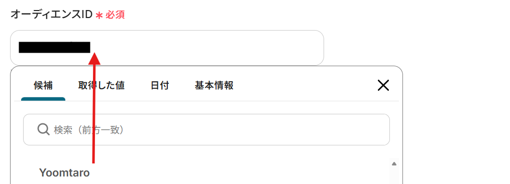 オーディエンスIDは候補から下記のように選択してください。
