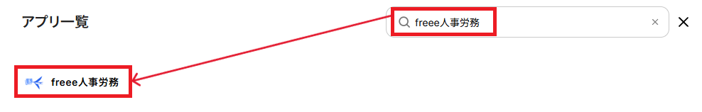 アプリ一覧の検索窓からfreee人事労務を検索し、クリックします。