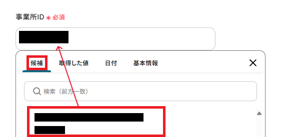 「事業所ID」は、連携させる事業所を候補から選択してください。