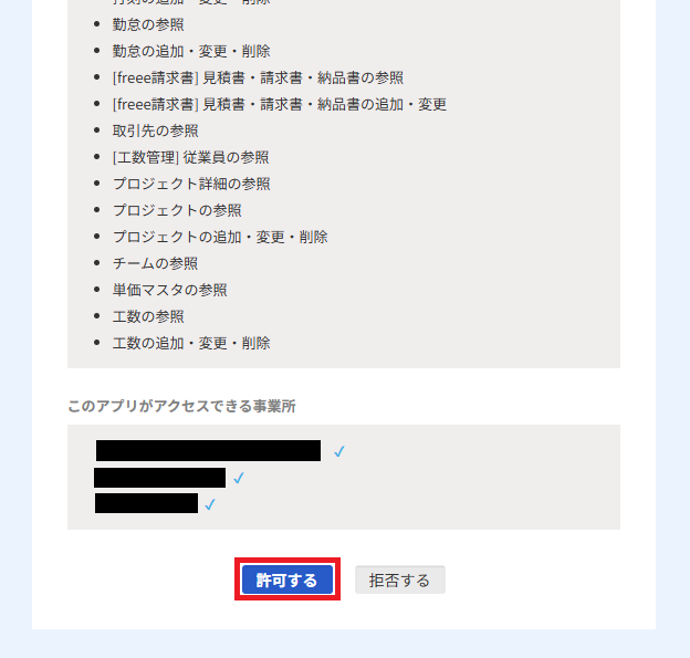 アプリ連携の開始画面が出てくるので、内容を確認し「許可する」を押してください。