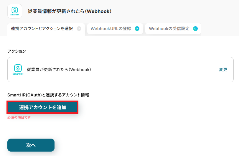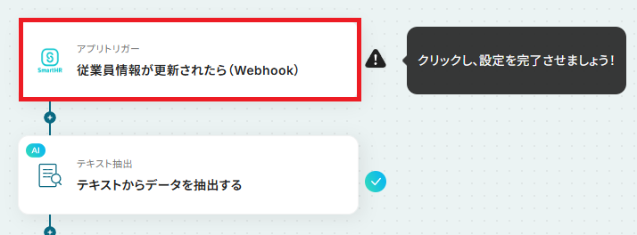 まず、「従業員が更新されたら(Webhook)」をクリックしてください。