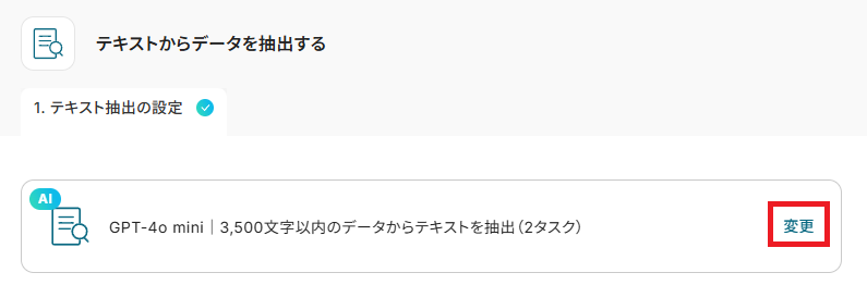 変換タイプは 「GPT-4o mini|3,500文字以内のデータからテキストを抽出(2タスク)」 が、デフォルトで設定されています。