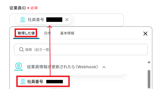 「従業員ID」は、ステップ3で取得した値を設定しましょう。