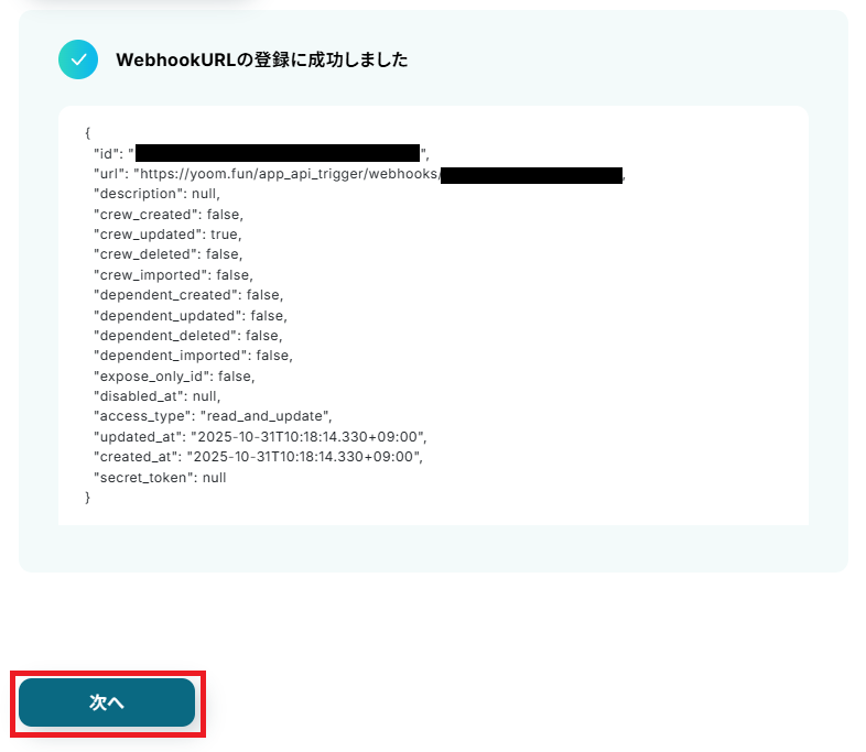 入力が完了したら「Webhook URLを登録」をクリックしましょう。