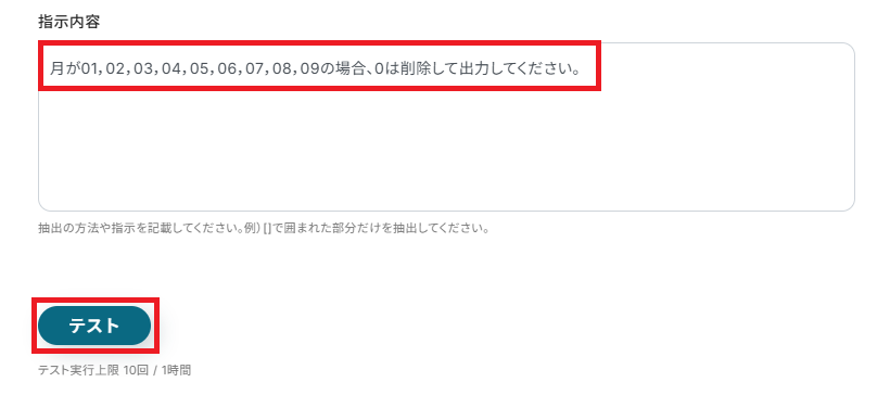 「指示内容」は、AIに対して抽出する際の条件や指示を自由に記入できます。