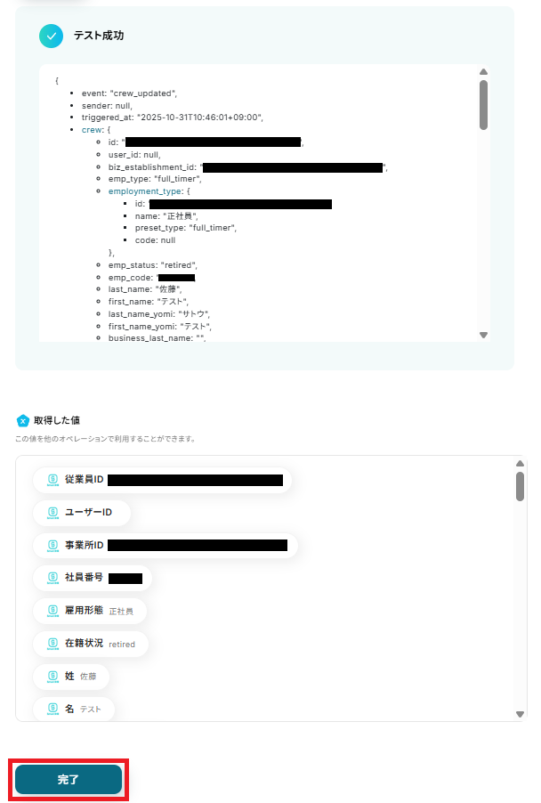 以上が、SmartHRで従業員情報が更新された際に、freee人事労務の従業員情報も自動で更新するフローの連携手順になります。